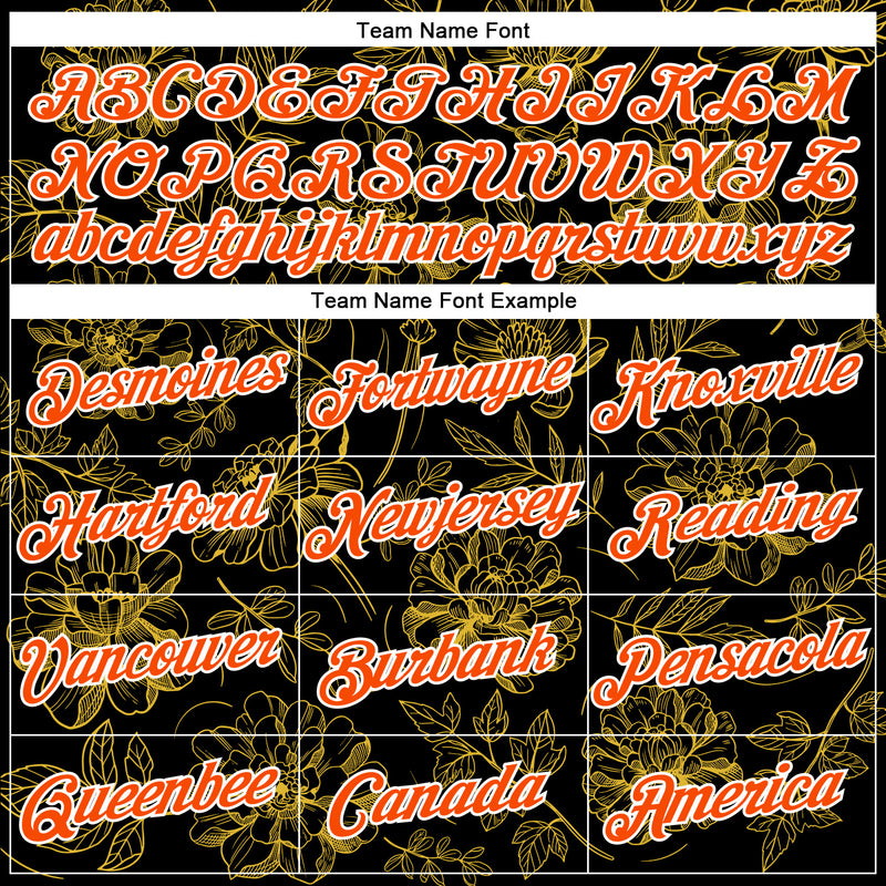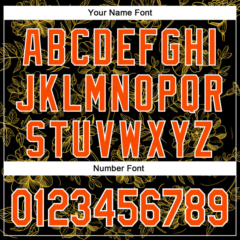 Custom Stitched Black Orange-White 3D Pattern Design Golden Subtle Floral Sports Pullover Sweatshirt Hoodie