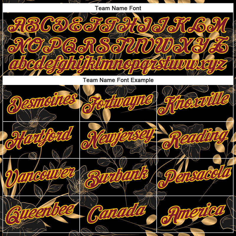 Custom Stitched Black Crimson-Yellow 3D Pattern Design Golden Subtle Floral Sports Pullover Sweatshirt Hoodie