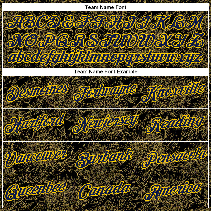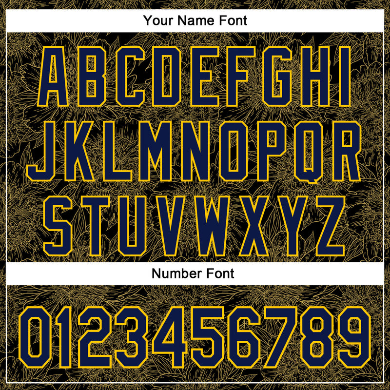 Custom Stitched Black Navy-Yellow 3D Pattern Design Golden Subtle Floral Sports Pullover Sweatshirt Hoodie