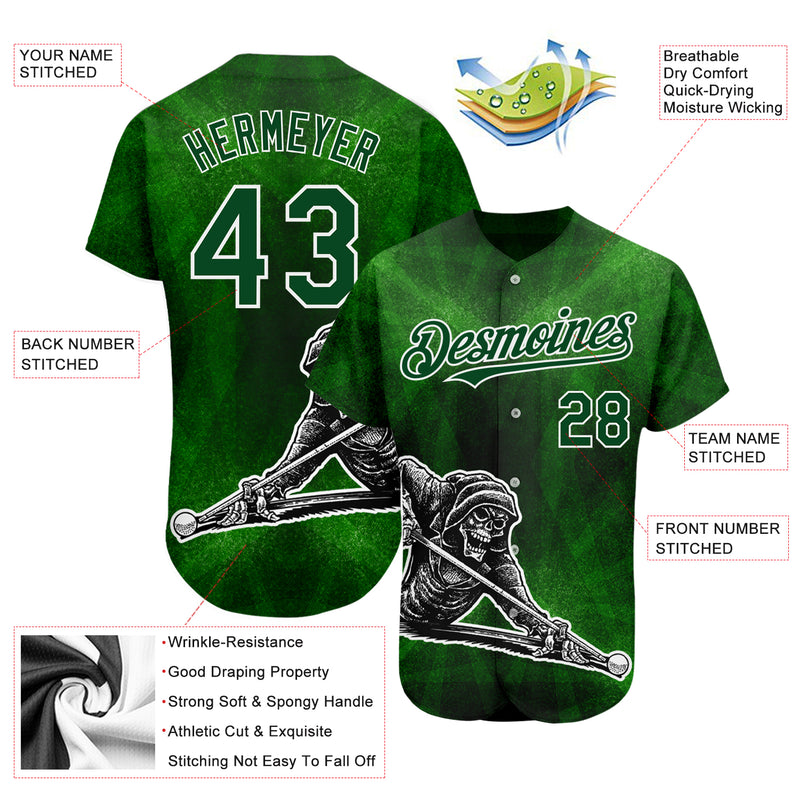 Custom Green White 3D Pattern Design A Skeleton Playing Billiards While Drinking A Beer Authentic Baseball Jersey