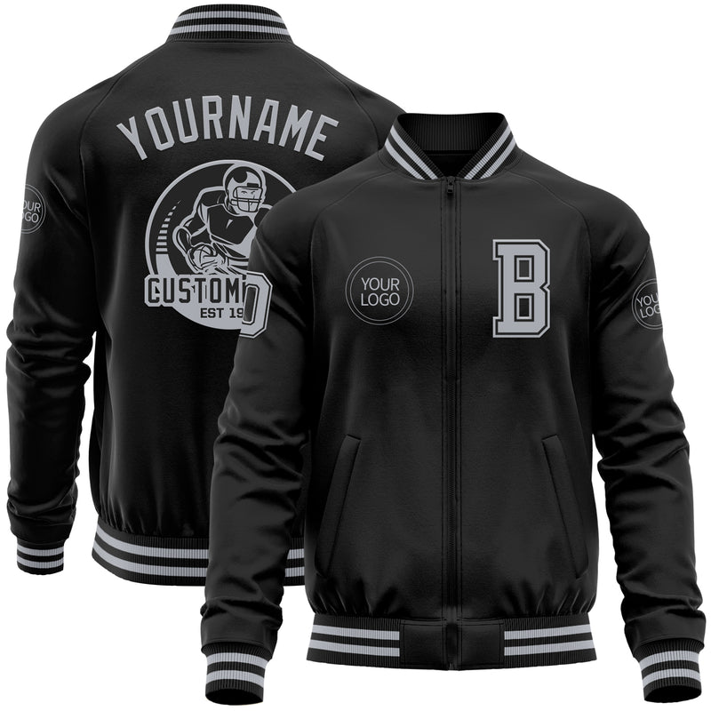 Custom Black Gray Bomber Varsity Letterman Zipper Jacket