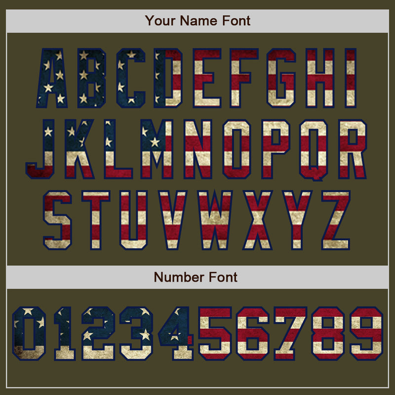 Custom Olive Vintage USA Flag Cream-Navy Pinstripe Authentic Split Fashion Salute To Service Baseball Jersey