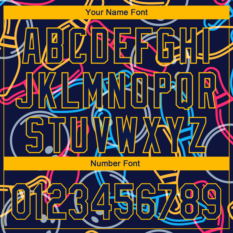Custom Navy Gold 3D Pattern Design Bowling Authentic Baseball Jersey