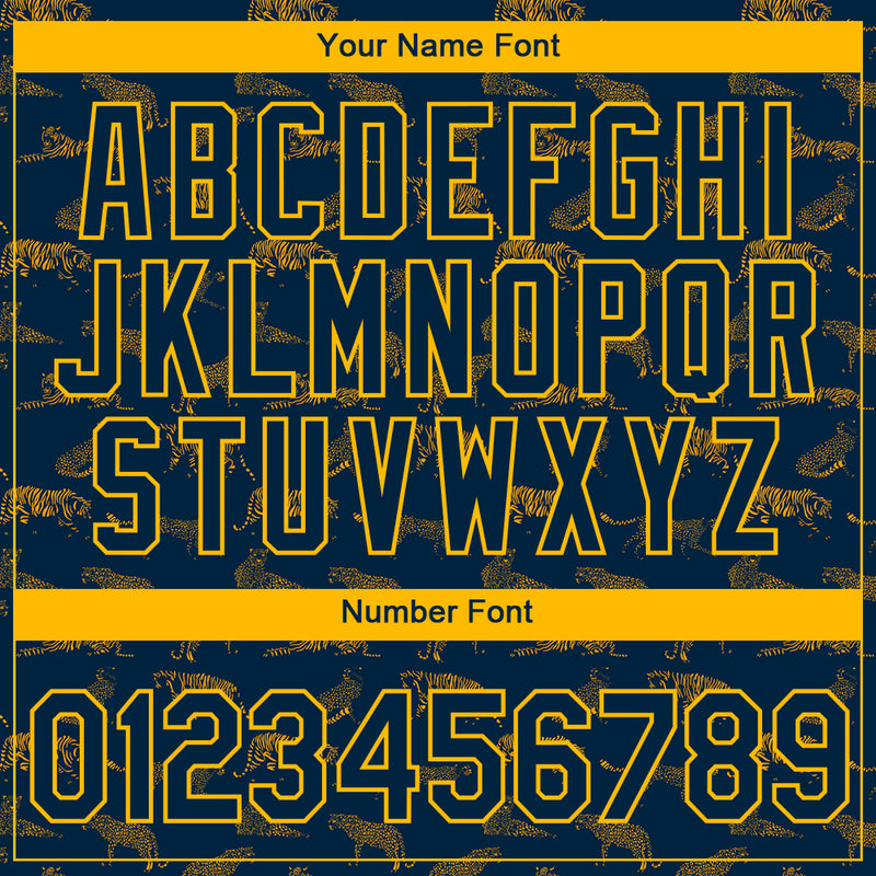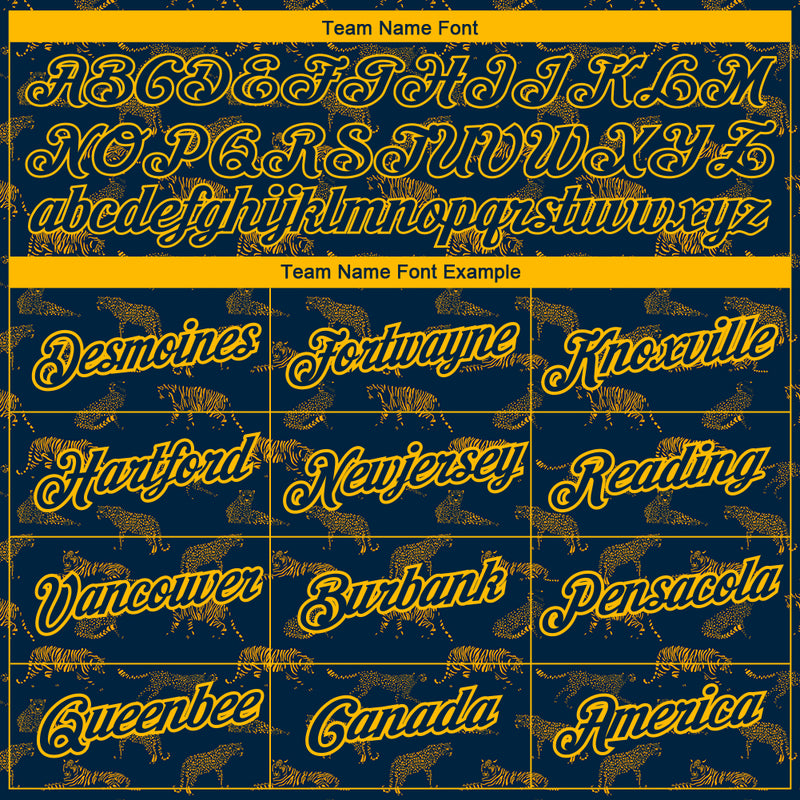 Custom Navy Gold 3D Pattern Design Tiger Performance T-Shirt