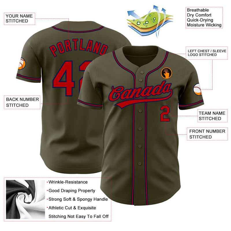 Custom Olive Red-Navy Authentic Salute To Service Baseball Jersey