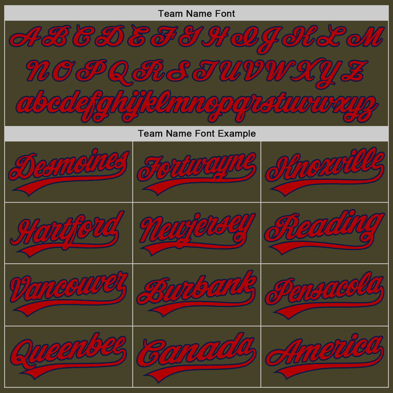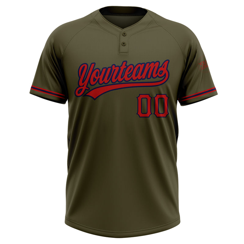 Custom Olive Red-Navy Salute To Service Two-Button Unisex Softball Jersey