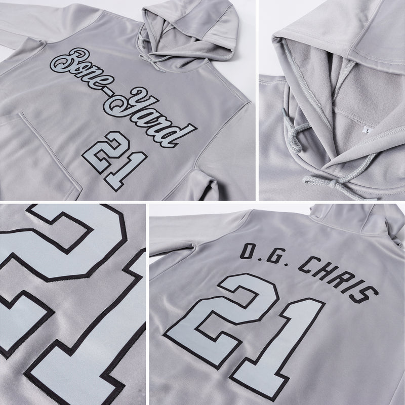 Custom Stitched Gray Gray-Black Sports Pullover Sweatshirt Hoodie