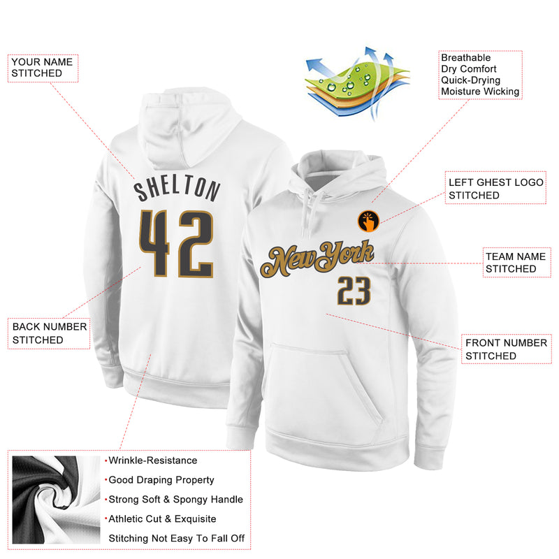 Custom Stitched White Steel Gray-Old Gold Sports Pullover Sweatshirt Hoodie