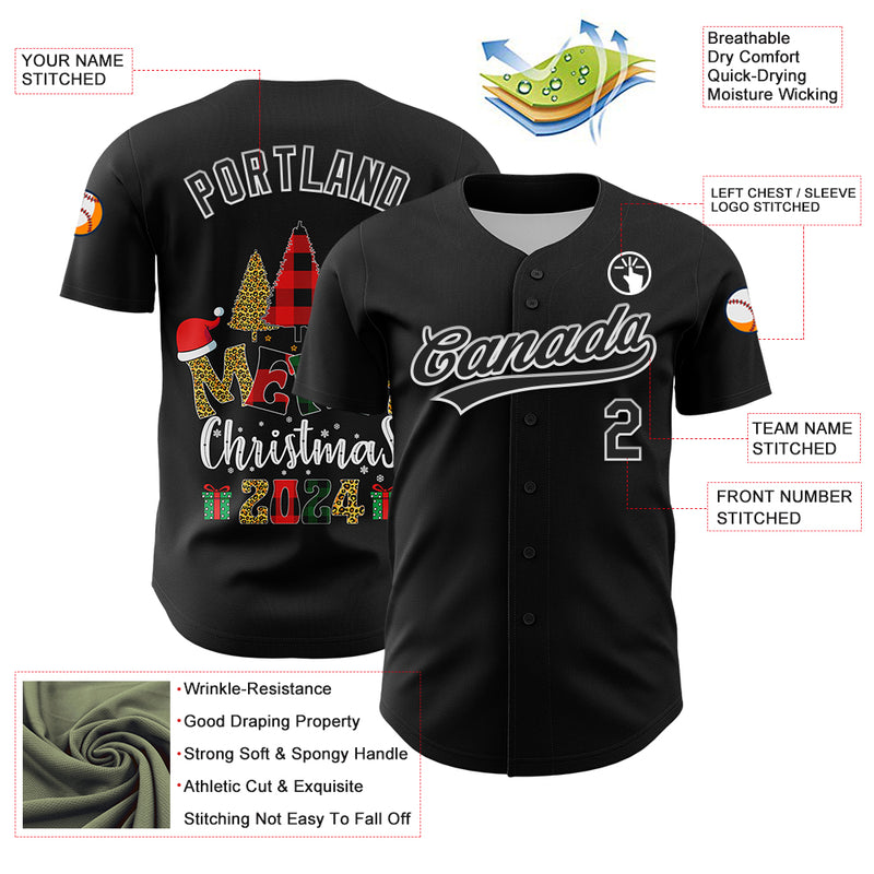 Custom Black White 3D Funny Christmas Authentic Baseball Jersey
