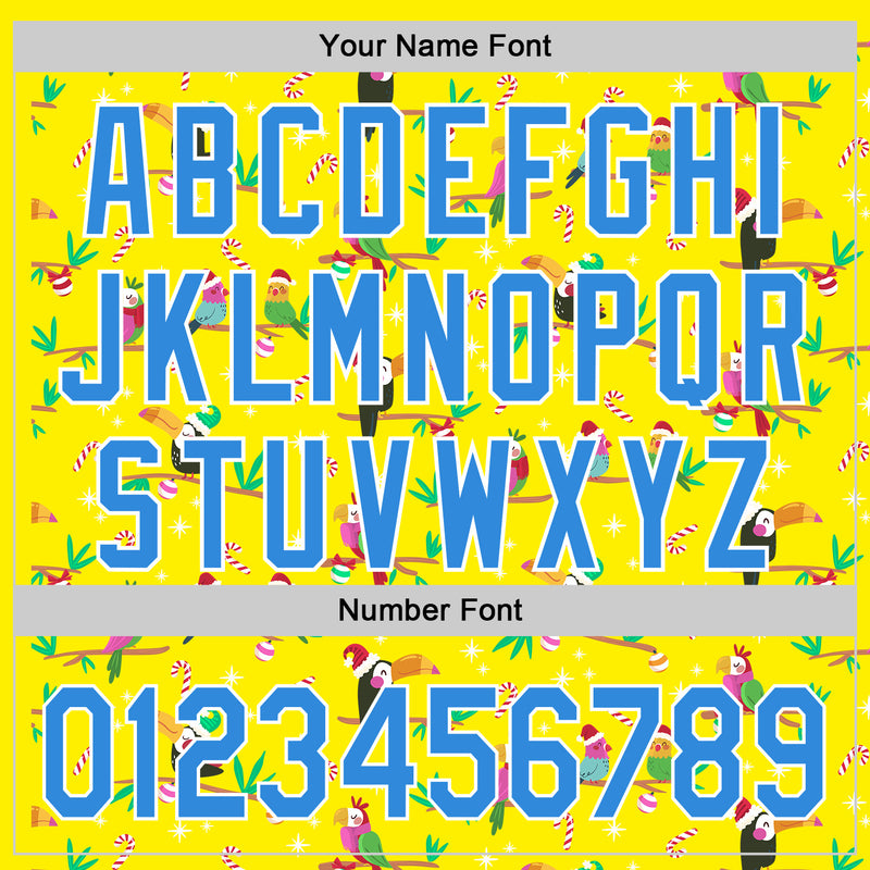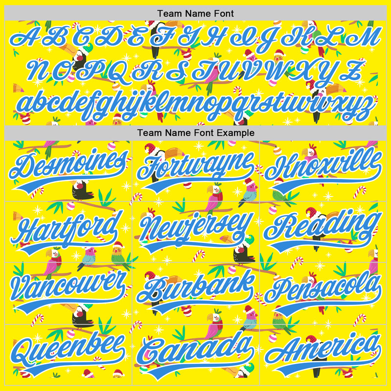 Custom Light Yellow Electric Blue-White 3D Funny Christmas Authentic Baseball Jersey