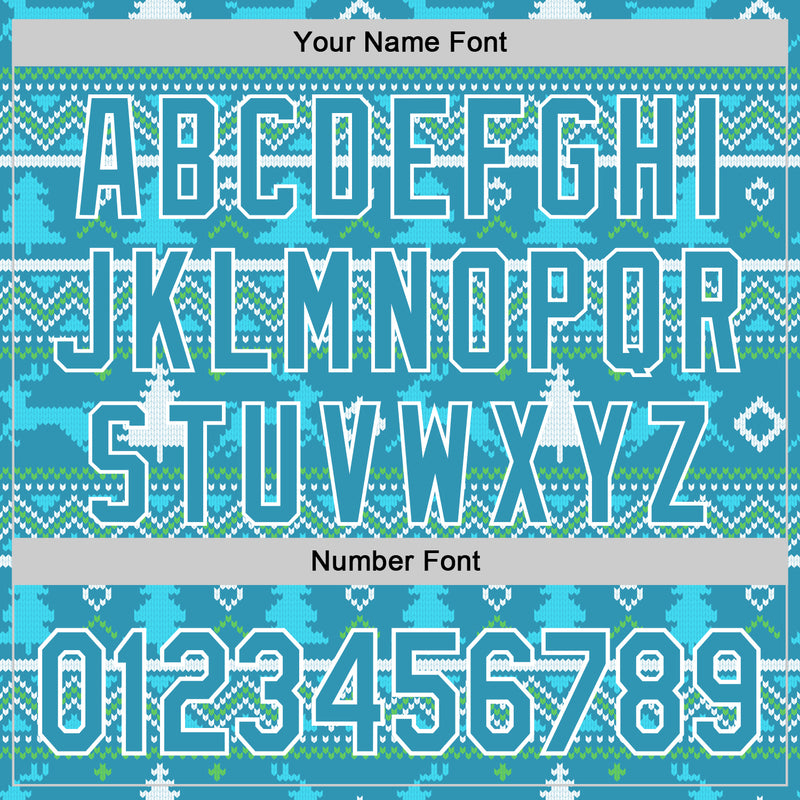 Custom White Light Blue-White 3D Christmas Ugly Sweater Hockey Lace Neck Jersey