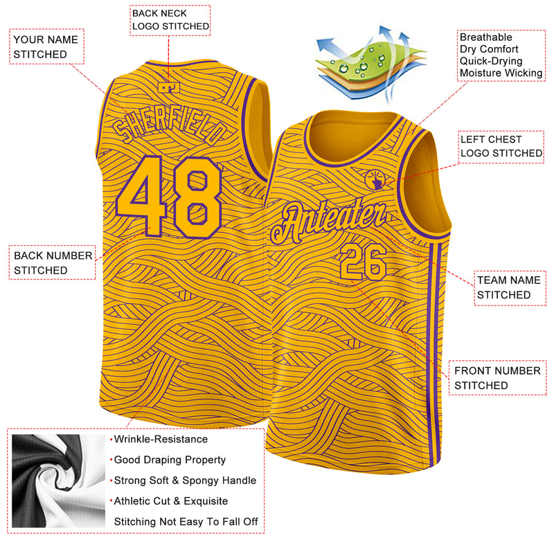 Custom Gold Purple Authentic City Edition Basketball Jersey