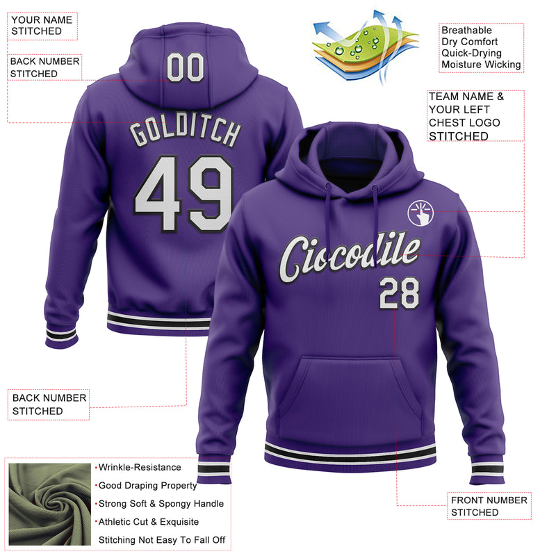 Custom Stitched Purple White-Black Sports Pullover Sweatshirt Hoodie