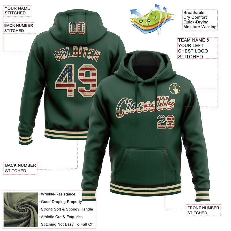 Custom Stitched Green Vintage USA Flag-Cream Sports Pullover Sweatshirt Hoodie