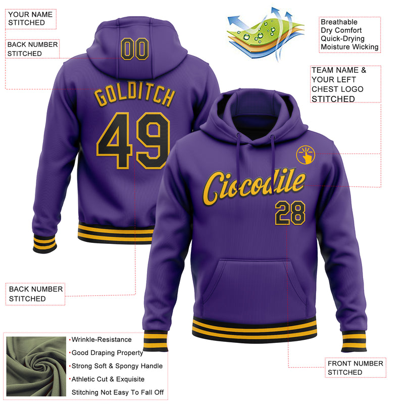 Custom Stitched Purple Black-Gold Sports Pullover Sweatshirt Hoodie