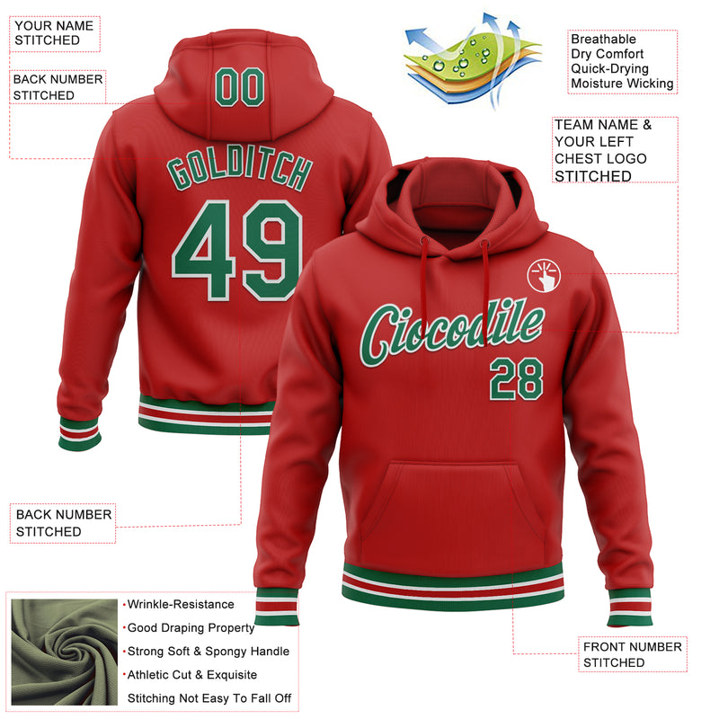 Custom Stitched Red Kelly Green-White Sports Pullover Sweatshirt Hoodie