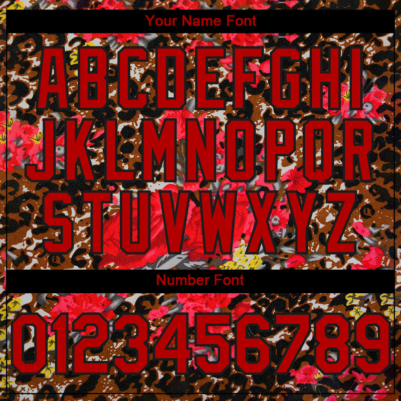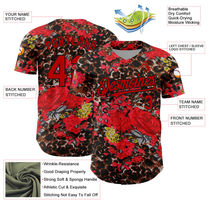 Custom Black Red 3D Pattern Design Northeast China Big Flower And Leopard Print Authentic Baseball Jersey