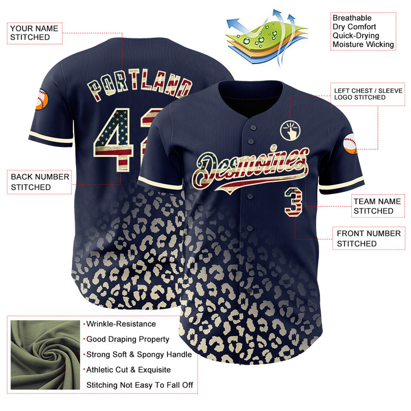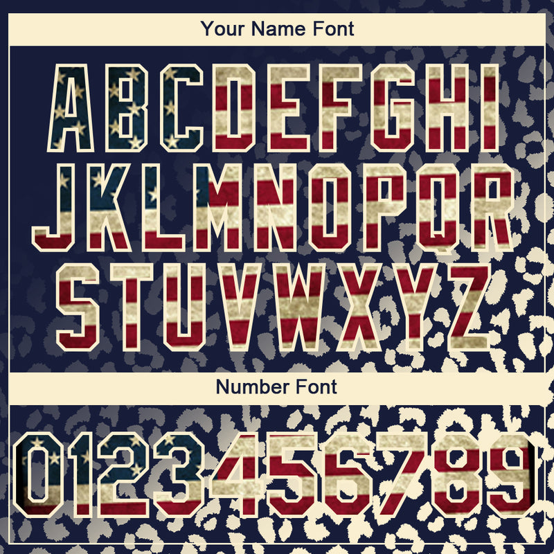 Custom Navy Vintage USA Flag-Cream 3D Pattern Design Leopard Print Fade Fashion Authentic Baseball Jersey