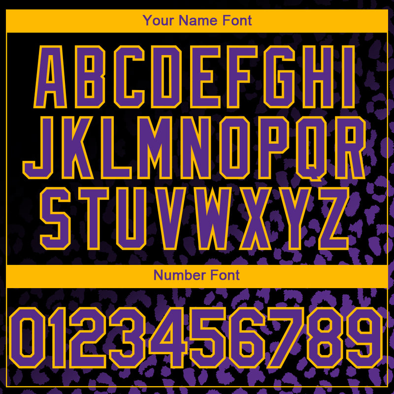 Custom Black Purple-Gold 3D Pattern Design Leopard Print Fade Fashion Authentic Baseball Jersey