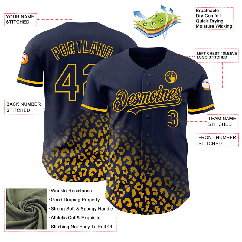 Custom Navy Gold 3D Pattern Design Leopard Print Fade Fashion Authentic Baseball Jersey