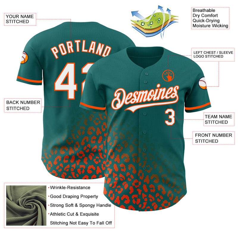Custom Teal White-Orange 3D Pattern Design Leopard Print Fade Fashion Authentic Baseball Jersey