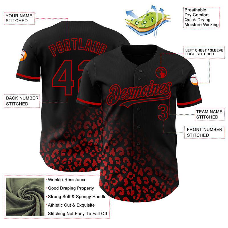 Custom Black Red 3D Pattern Design Leopard Print Fade Fashion Authentic Baseball Jersey