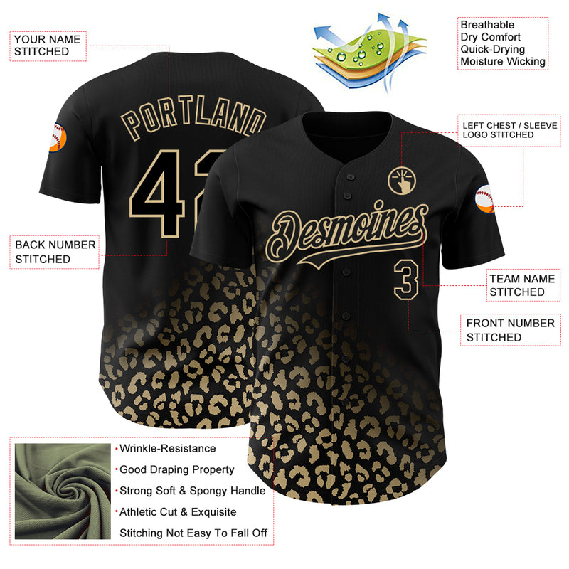 Custom Black Vegas Gold 3D Pattern Design Leopard Print Fade Fashion Authentic Baseball Jersey