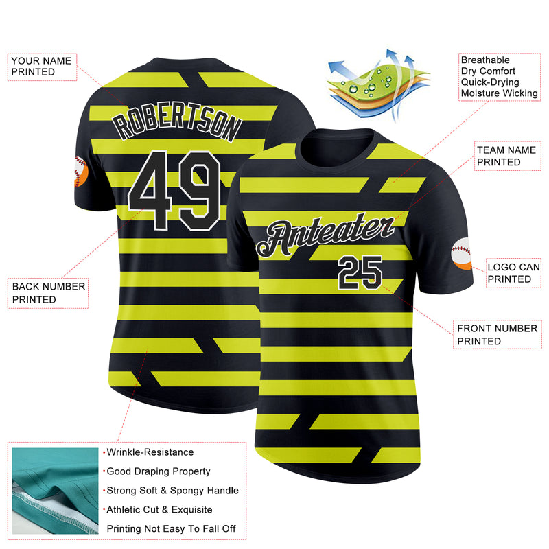 Custom Black Neon Yellow-White 3D Esports Performance T-Shirt