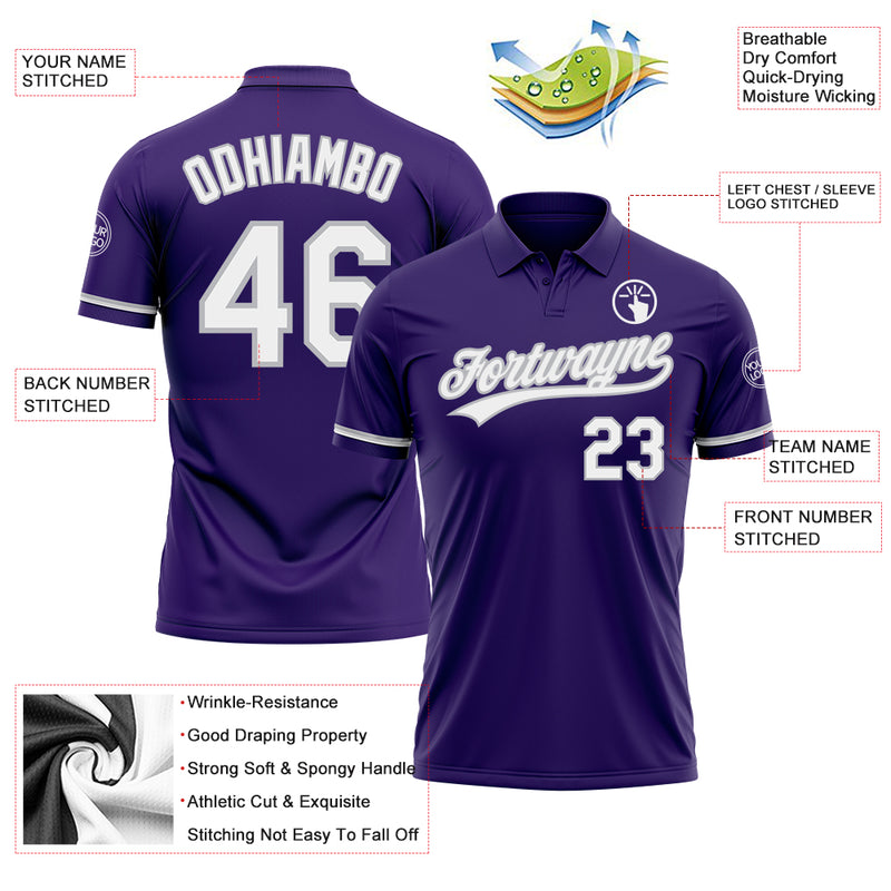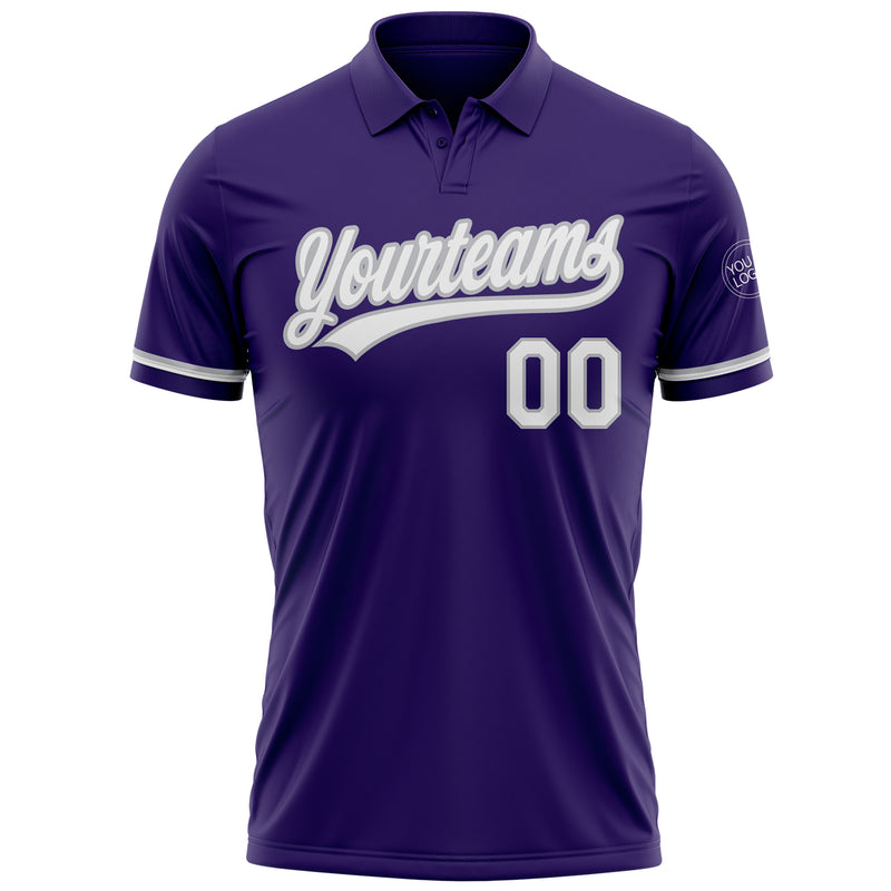 Custom Purple White-Gray Performance Vapor Golf Polo Shirt