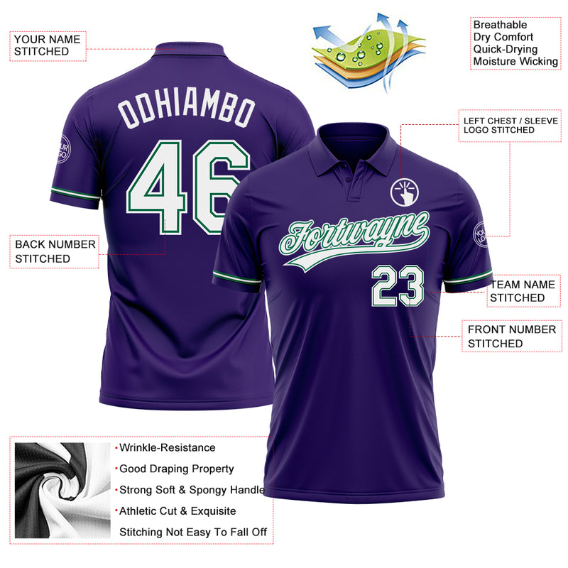 Custom Purple White-Kelly Green Performance Vapor Golf Polo Shirt