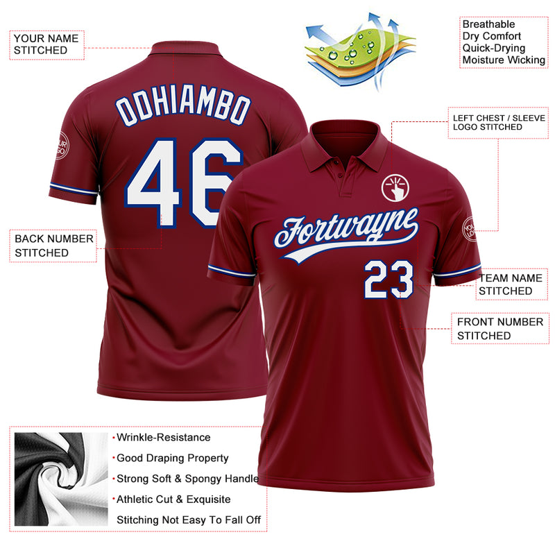 Custom Crimson White-Royal Performance Vapor Golf Polo Shirt