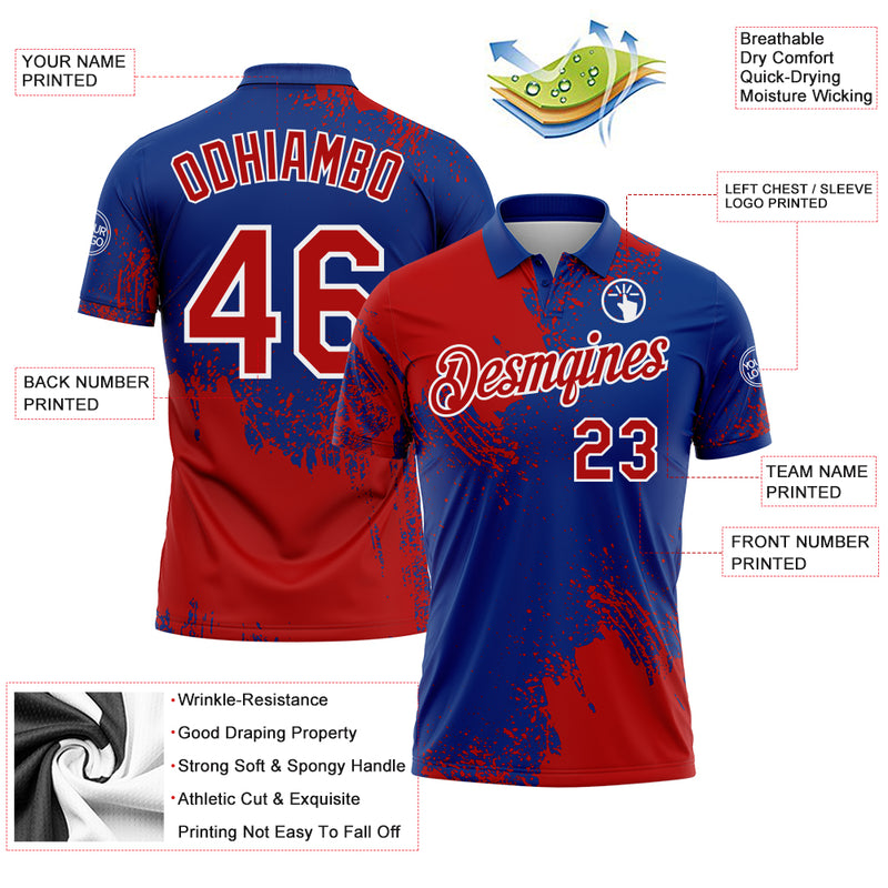 Custom Red Royal-White 3D Pattern Design Abstract Brush Stroke Performance Polo Shirt