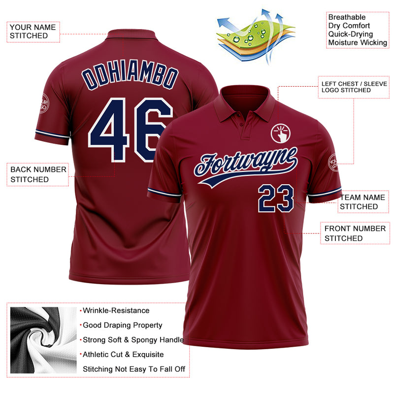 Custom Crimson Navy-White Performance Vapor Golf Polo Shirt