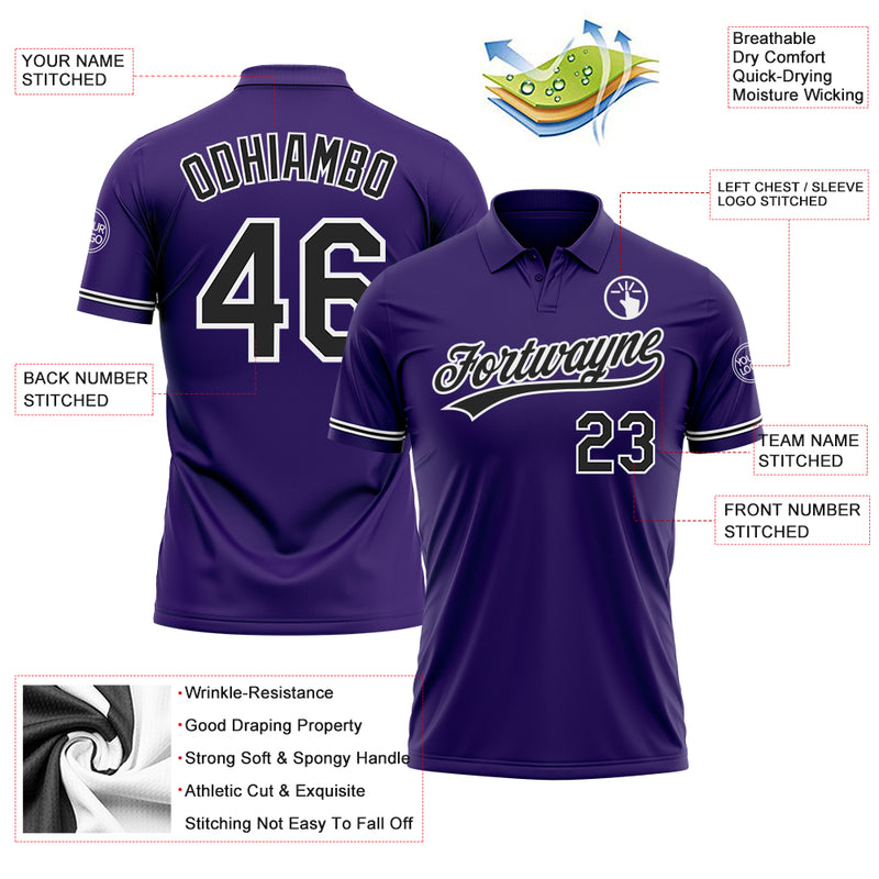 Custom Purple Black-White Performance Vapor Golf Polo Shirt