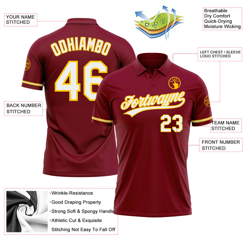 Custom Crimson White-Yellow Performance Vapor Golf Polo Shirt