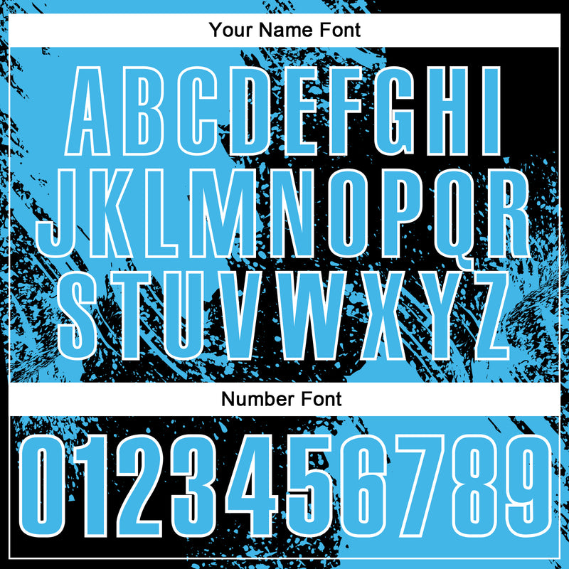 Custom Sky Blue Black-White 3D Pattern Design Abstract Brush Stroke Performance Polo Shirt