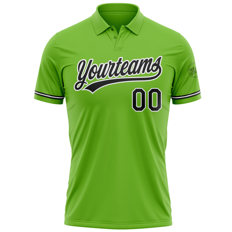 Custom Neon Green Black-White Performance Vapor Golf Polo Shirt