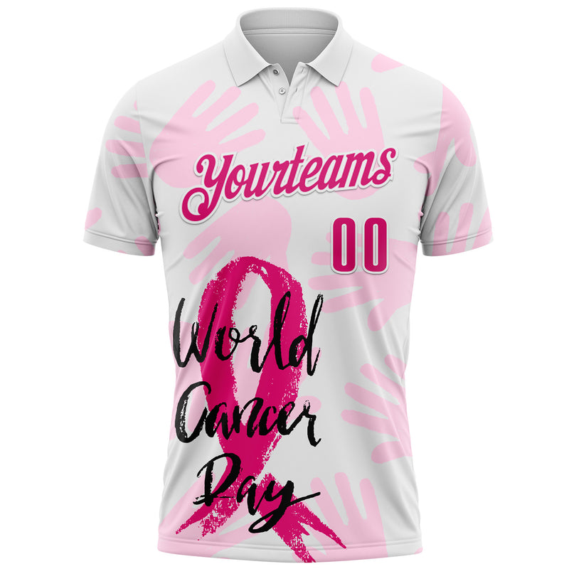 Custom White Hot Pink 3D Pink Ribbon Breast Cancer Awareness World Cancer Day Performance Polo Shirt