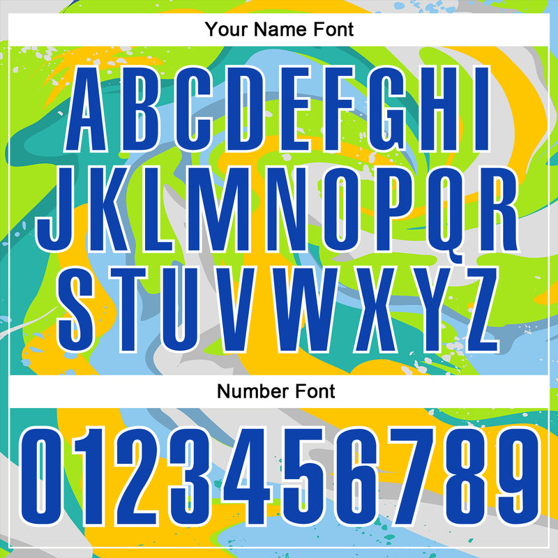 Custom Neon Green Thunder Blue Yellow-Aqua 3D Bowling Splash Ink Performance Polo Shirt