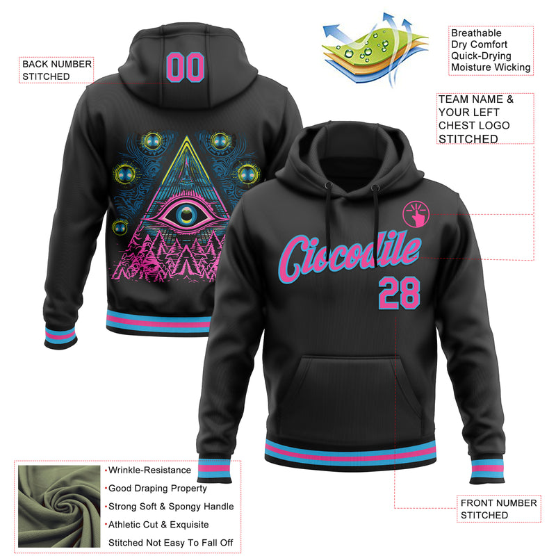 Custom Stitched Black Pink-Sky Blue 3D Pattern Design Evil Eyes Sports Pullover Sweatshirt Hoodie