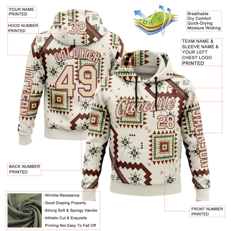 Custom White City Cream-Burgundy 3D Pattern Design Western Cowboy Tribal Ethnic Sports Pullover Sweatshirt Hoodie