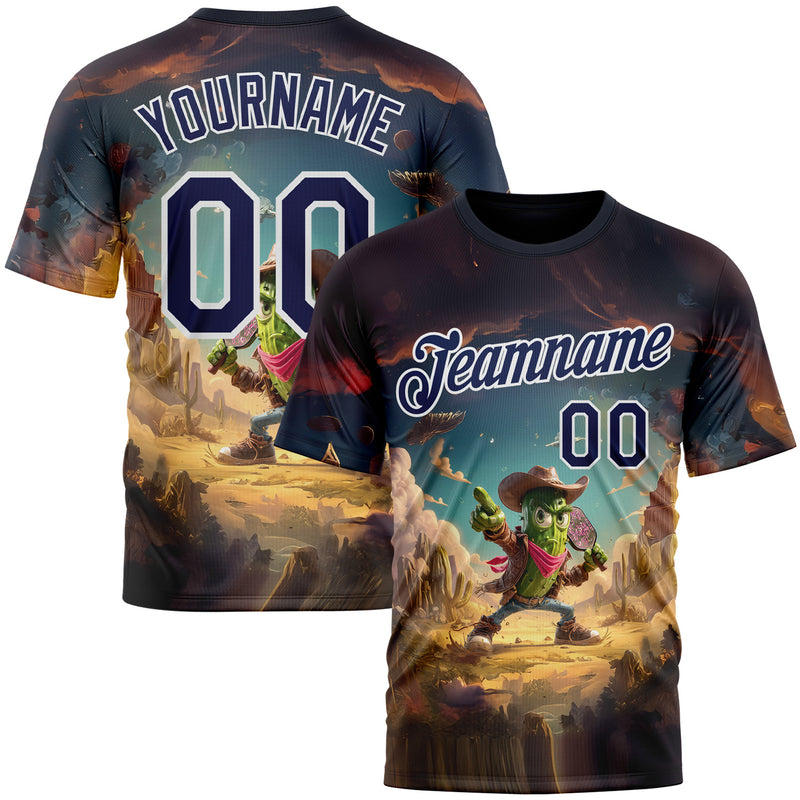 Custom Blue Navy-White 3D Funny Pickleball Paddles Balls West Cowboy Performance T-Shirt