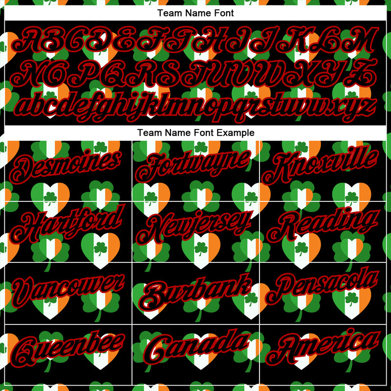 Custom Black Red 3D St. Patrick's Day Shamrock Performance Polo Shirt