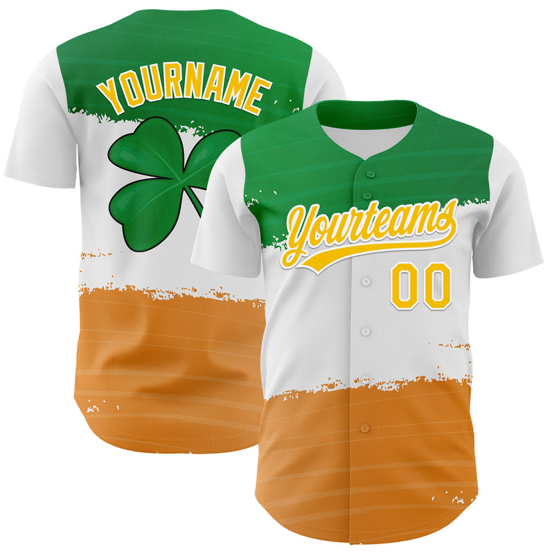 Custom Green Yellow-Texas Orange 3D St. Patrick's Day Shamrock Authentic Baseball Jersey
