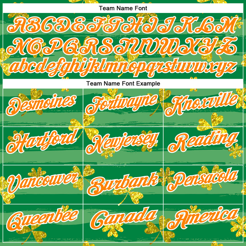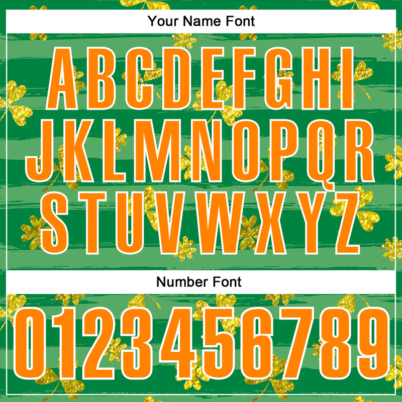 Custom Kelly Green Bay Orange-White 3D St. Patrick's Day Shamrock Performance Polo Shirt