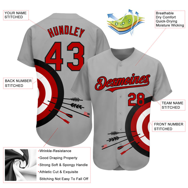 Custom Gray Red-Black 3D Pattern Design Dart Board Target Authentic Baseball Jersey