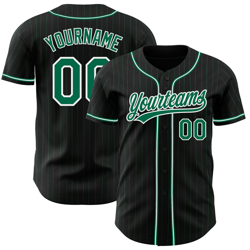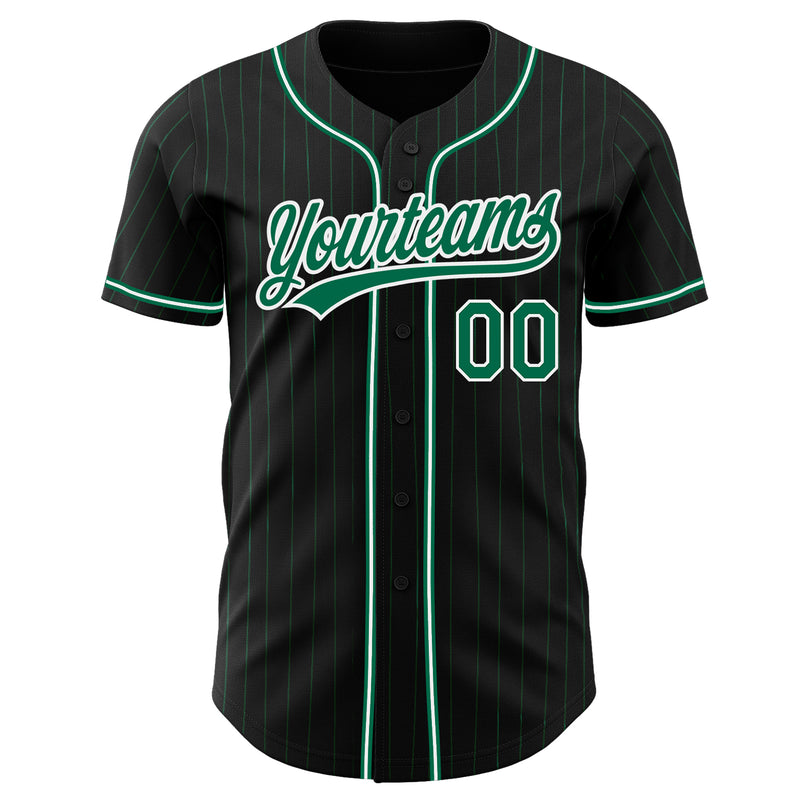 Custom Black Kelly Green Pinstripe Kelly Green-White Authentic Baseball Jersey