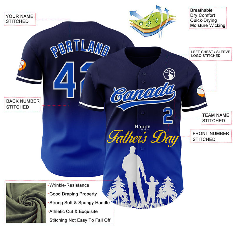 Custom Navy Thunder Blue-White 3D Pattern Design Father's Day Family Love Fade Authentic Baseball Jersey
