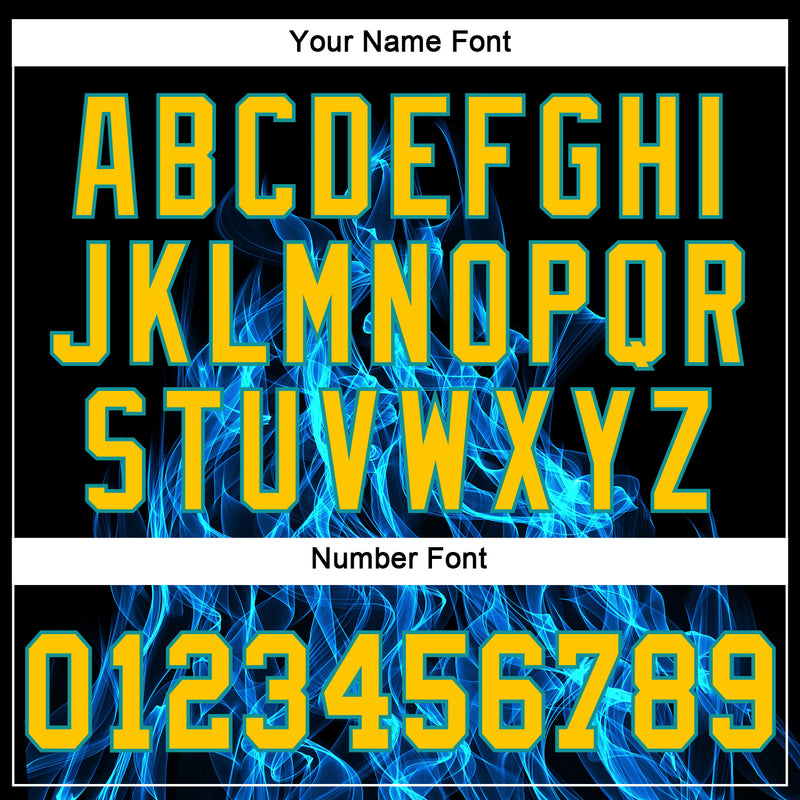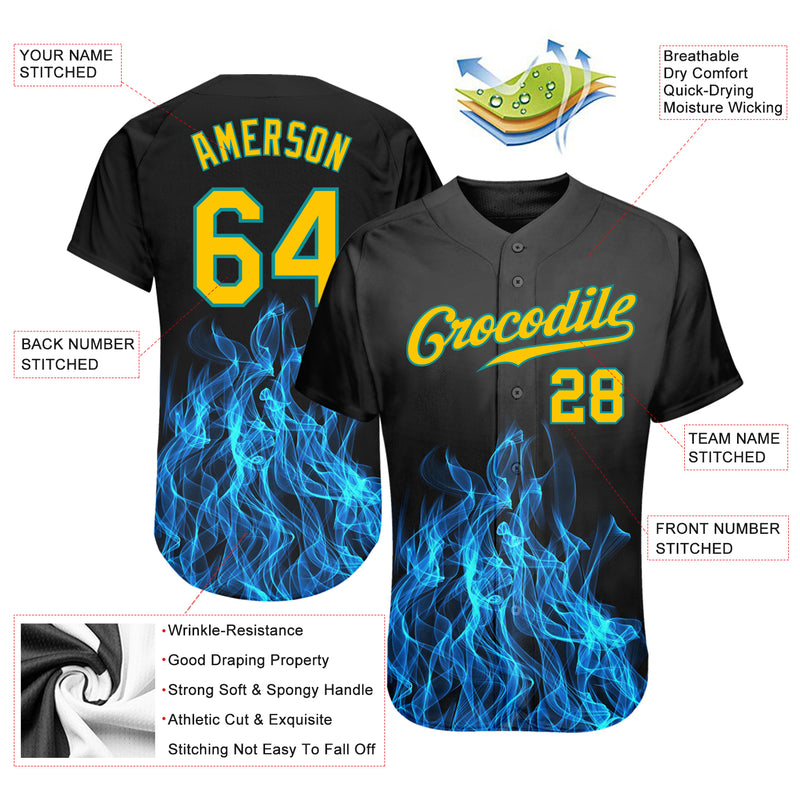 Custom Black Gold-Teal 3D Pattern Design Flame Authentic Baseball Jersey