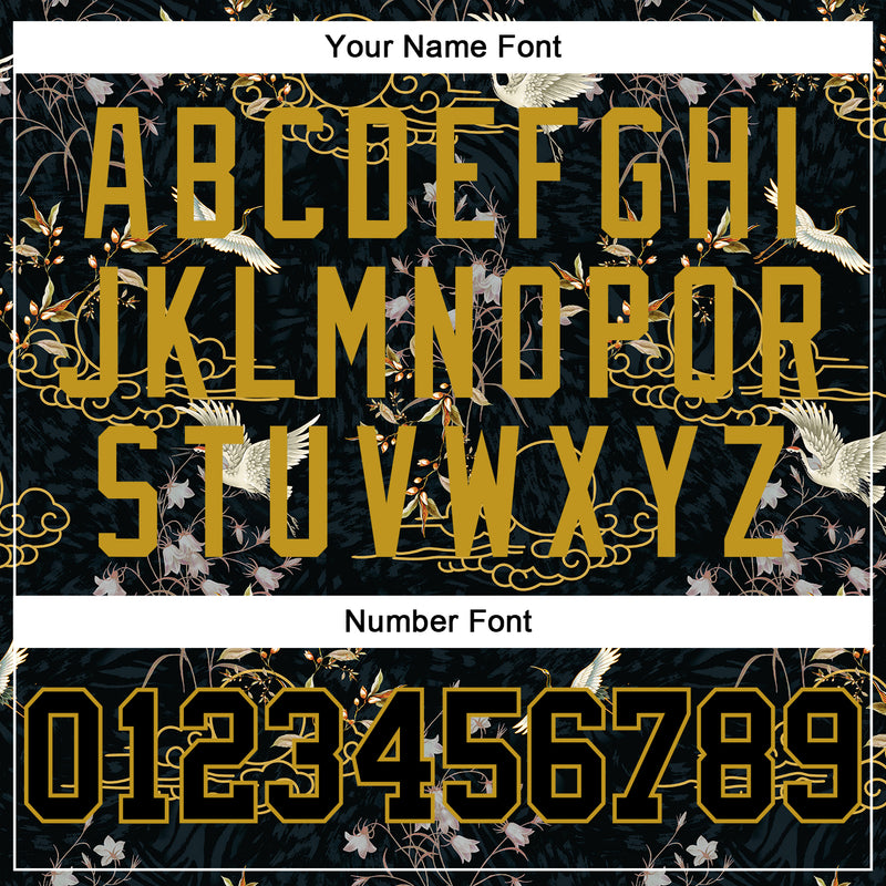 Custom Stitched Black Old Gold 3D Pattern Design Heron And Flower Sports Pullover Sweatshirt Hoodie
